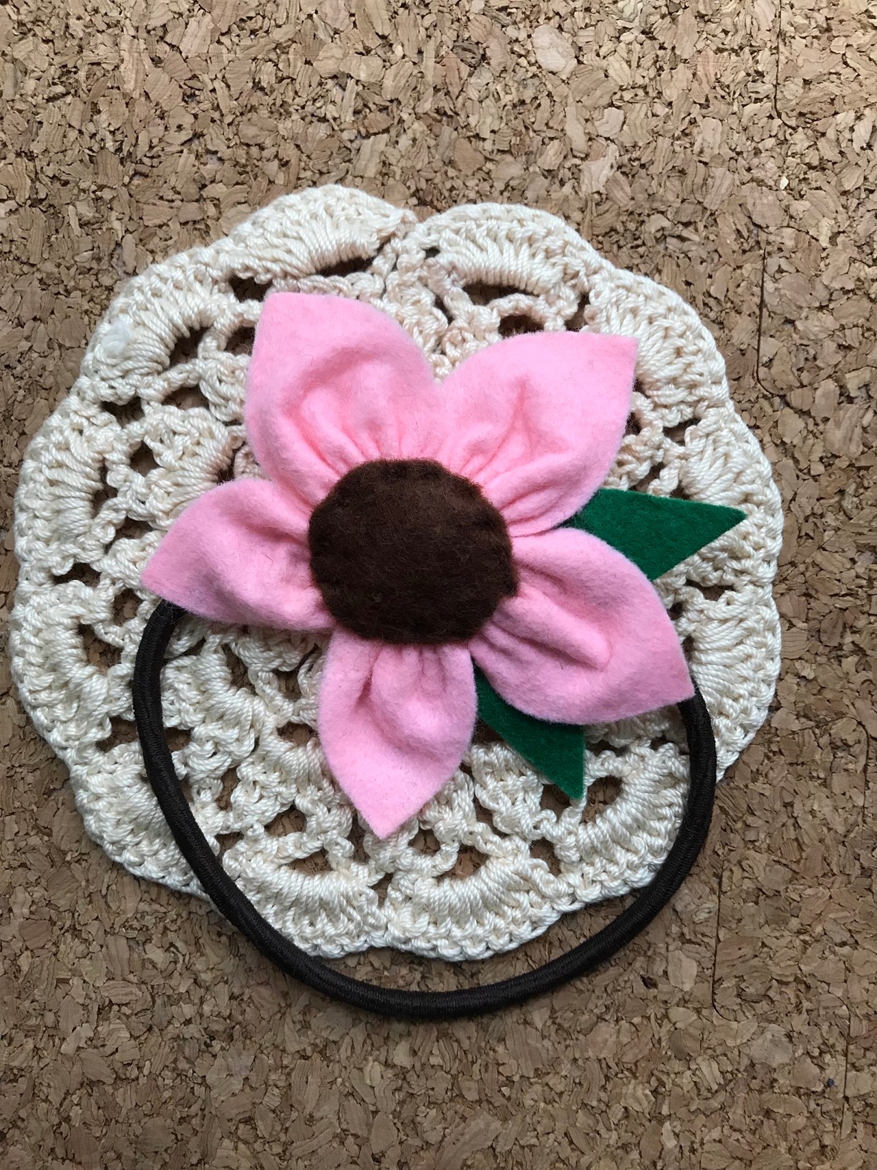 ピンクのフェルトで丁寧に作ったヘアゴムです。
