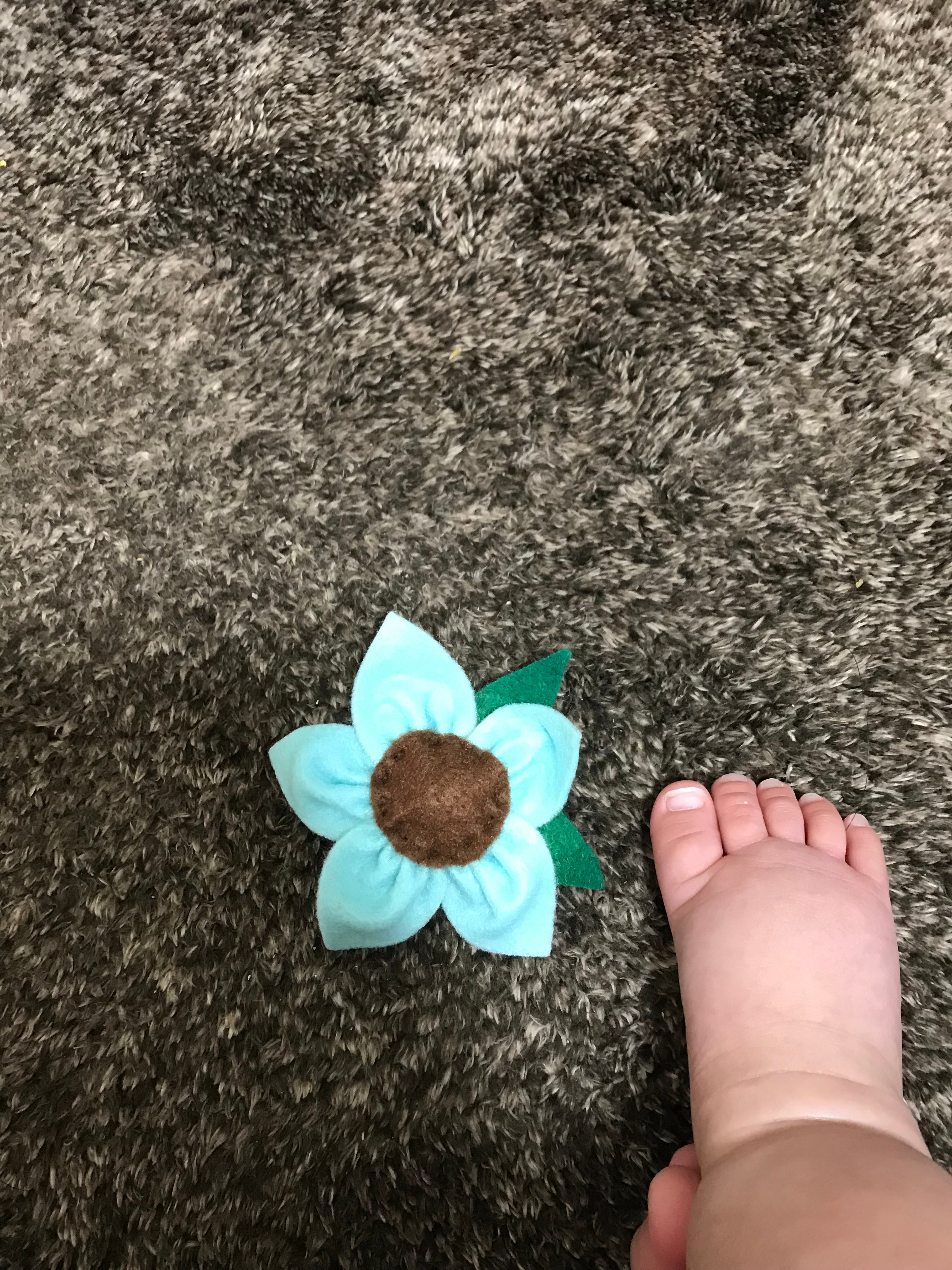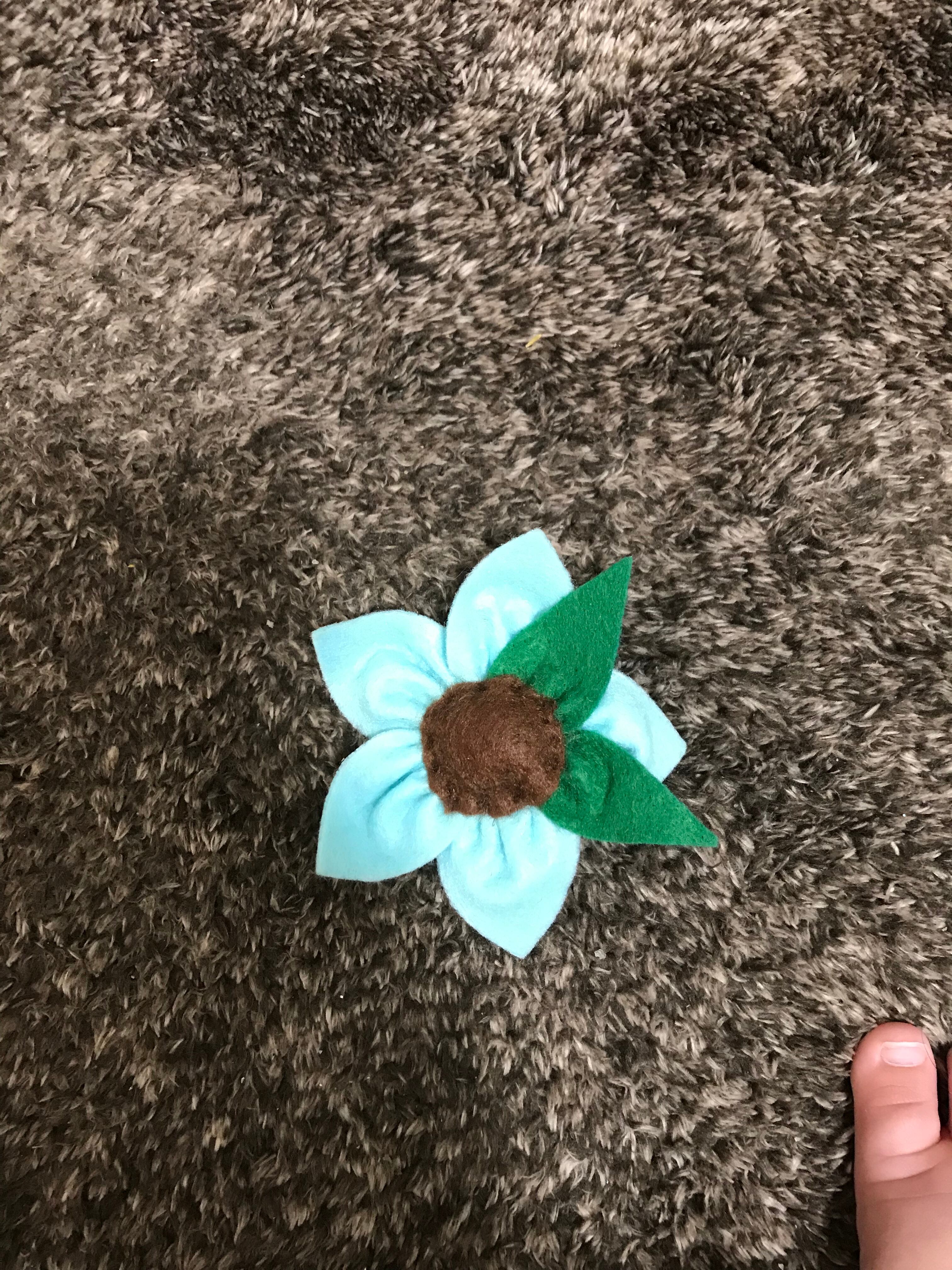 水色のフェルトで丁寧に作った花です。 ヘアアクセサリーなどのモチーフとしてのいかがでしょうか? 丁寧に作ってはいますが、手作りのため多少の歪みや形の違いがあります。 ご了承ください。