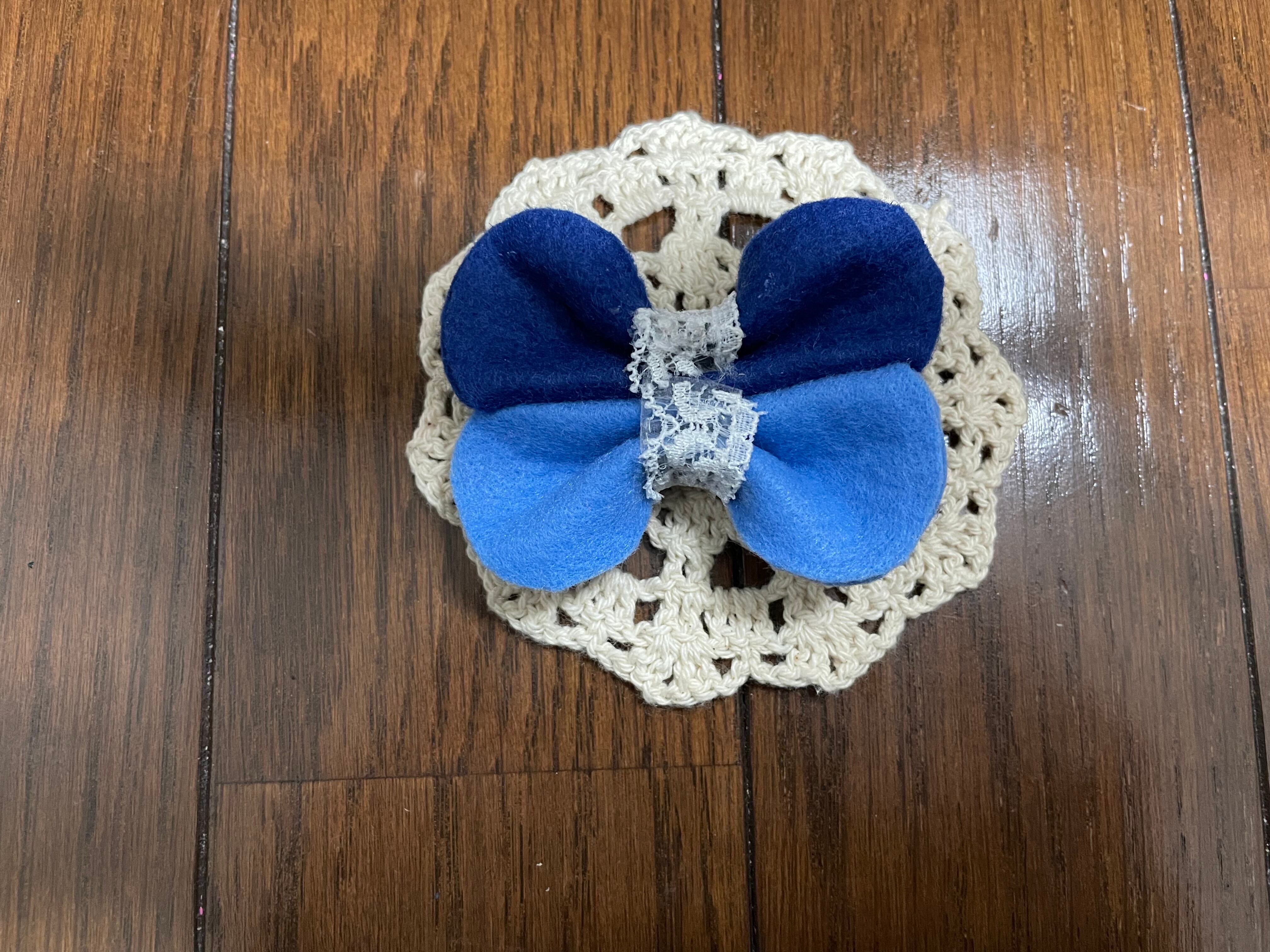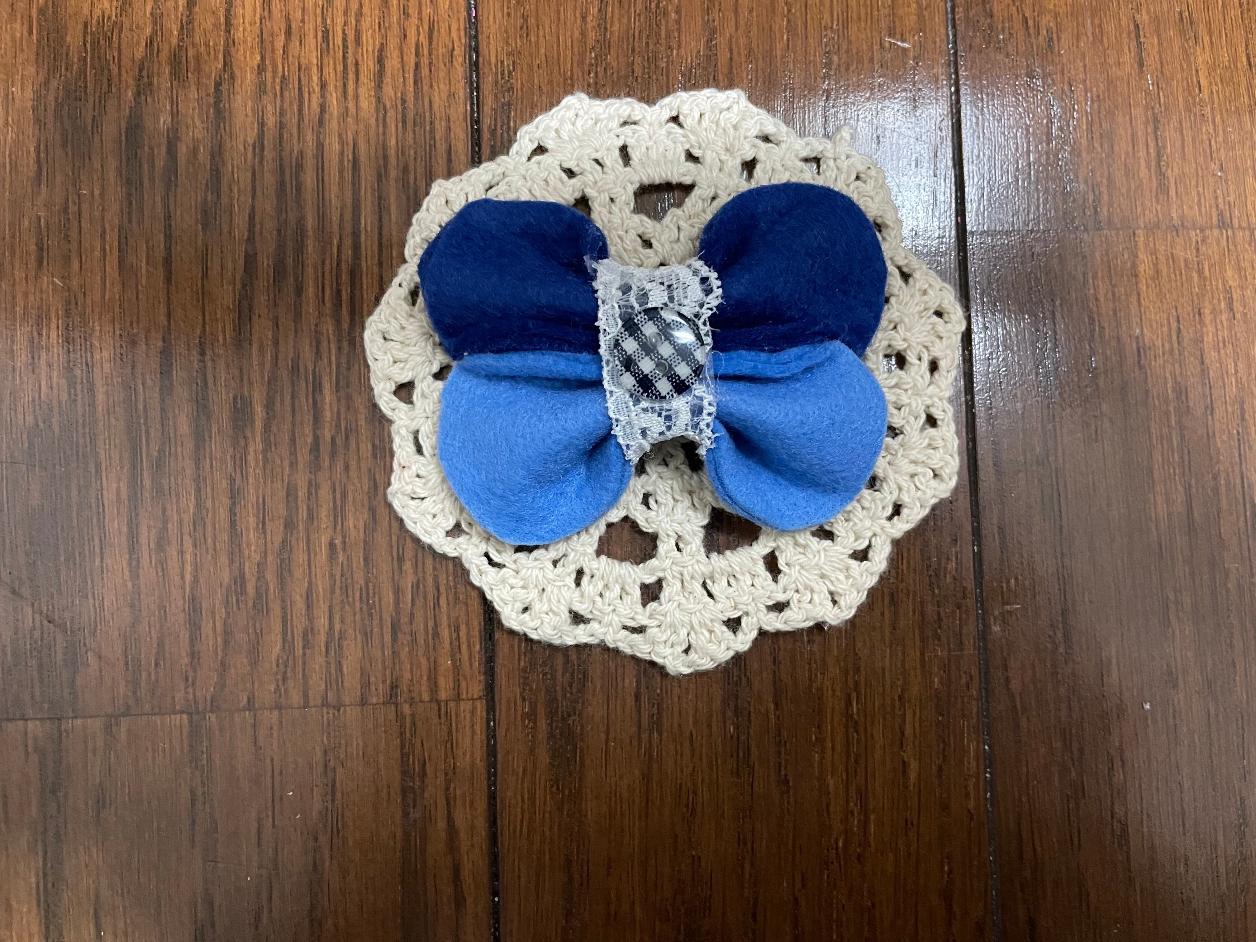 二種類の青いフェルトで丁寧に作った蝶です。