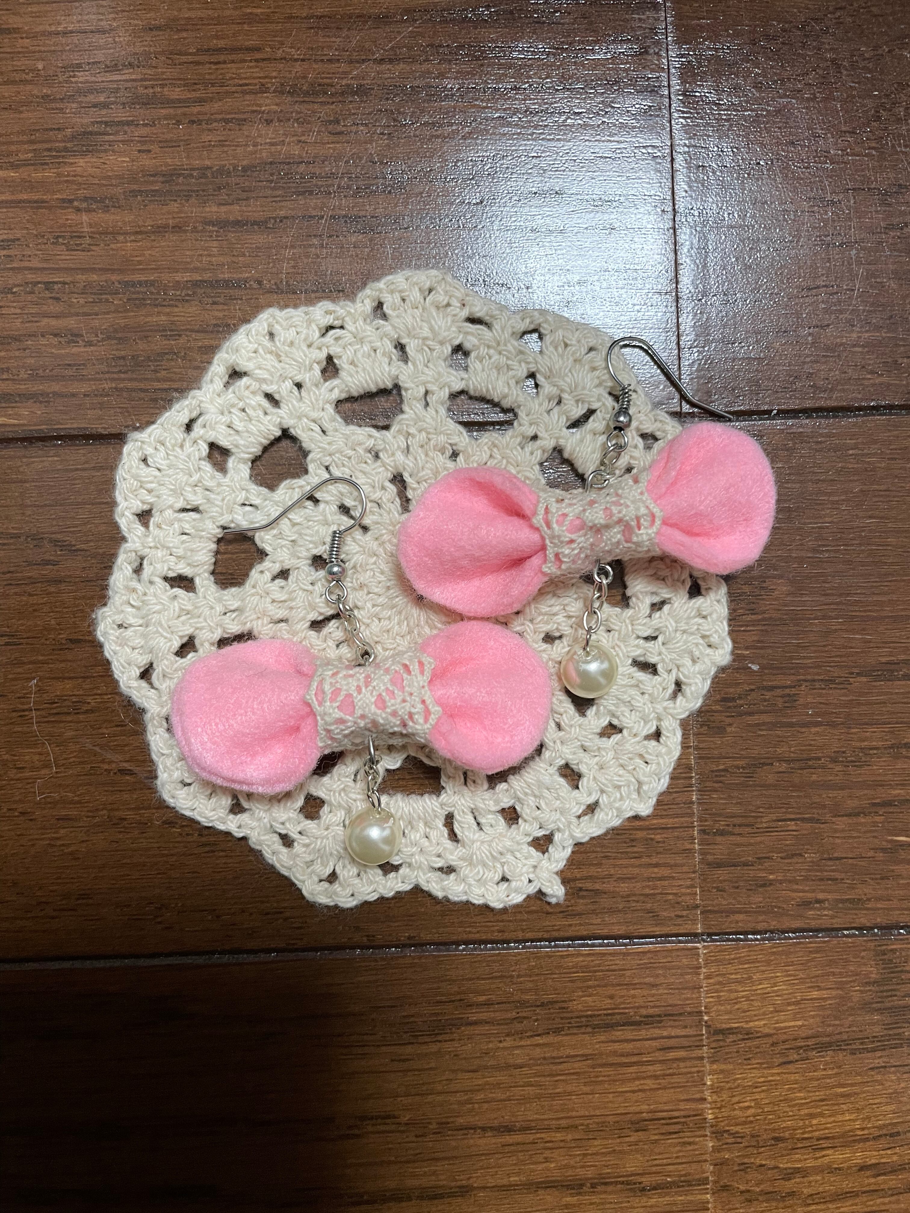 ピンクのフェルトとパールで丁寧に作ったかわいいピアスです。 丁寧に作ってはいますが、手作りのため多少の歪みや左右差などがあります。 また、金属アレルギーには対応していません。 ご了承ください。