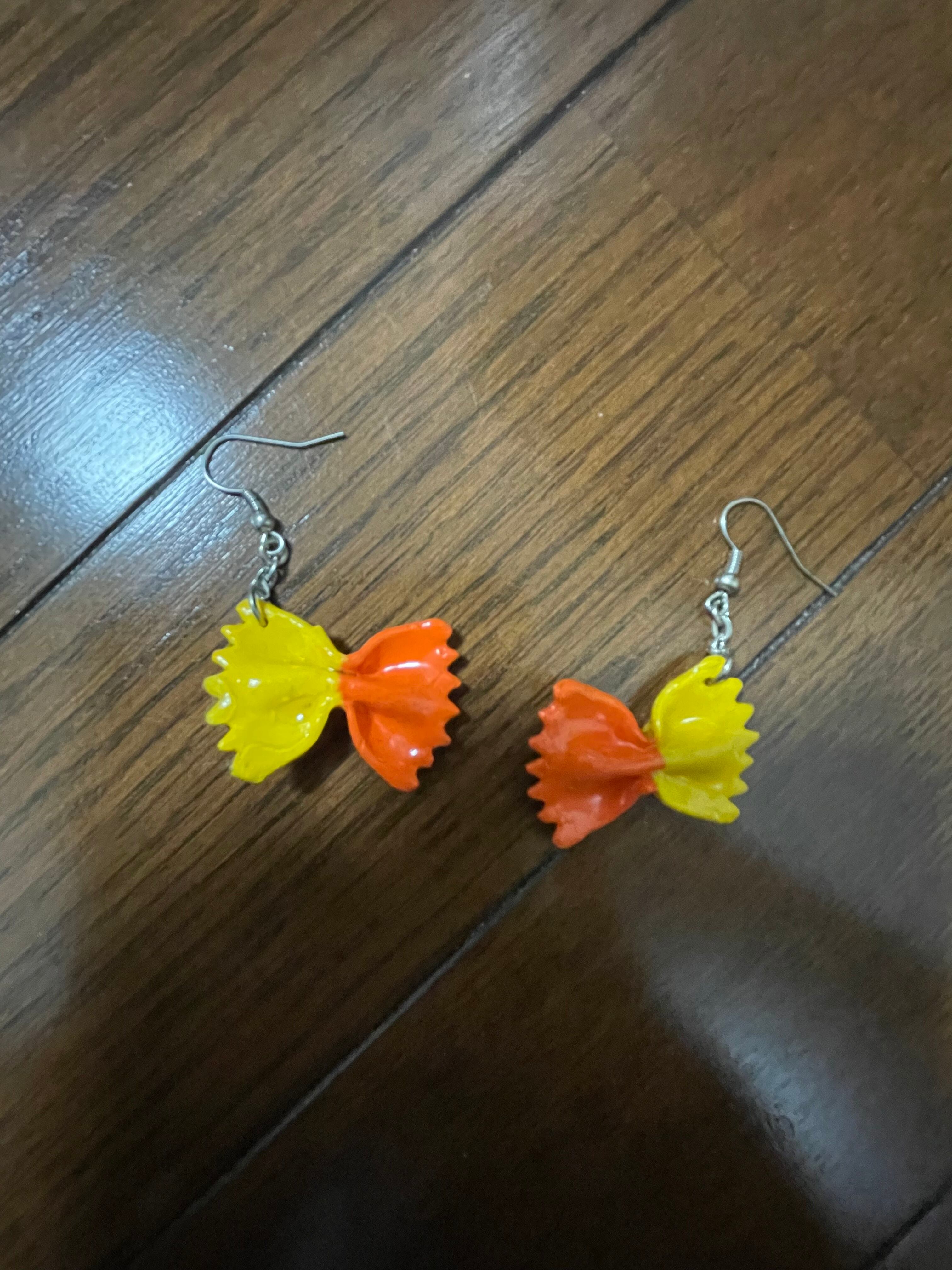 マカロニパスタ リボン型 イヤリング ハンドメイド 黄色×オレンジ