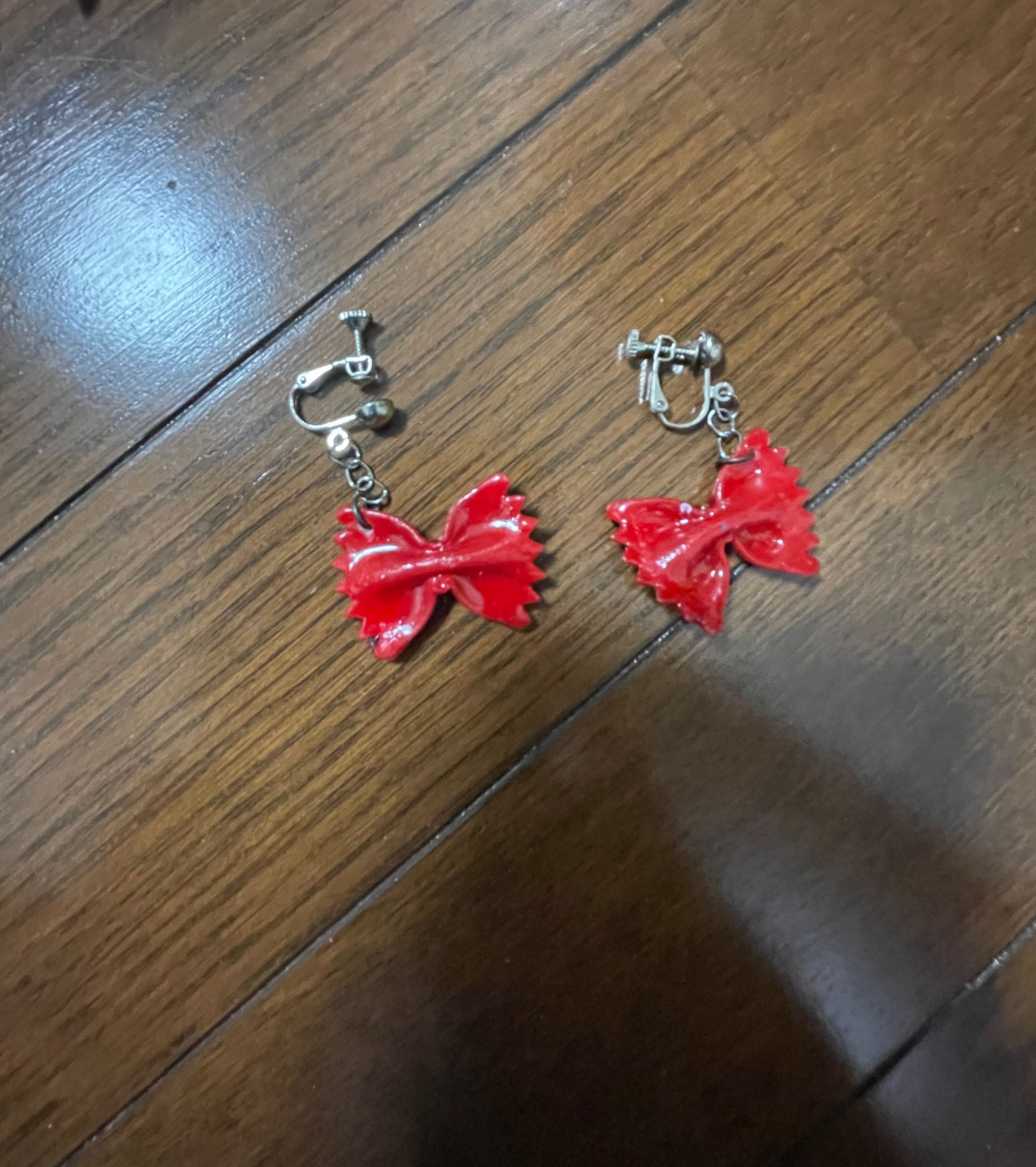 本物のマカロニパスタをカラフルに染めた上からレジンを塗り、イヤリングにしました。